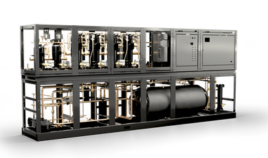 Designed for indoor installation, the system has a compact, modular layout with removable panels and accessible components for easy servicing.
